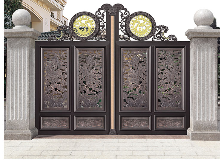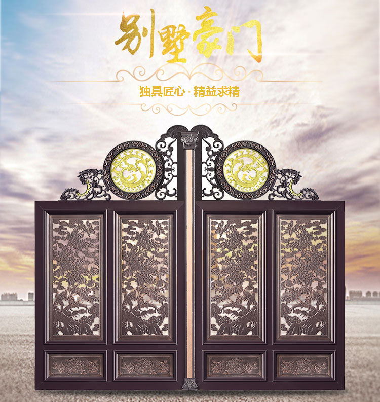 佰福来中式庭院别墅大门 电动院子入户中式对开铝艺门 工程安装